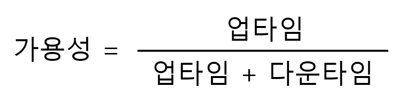 수식의 결과값이 크다는 것은 전체 사용 시간 중에서 대부분 사용 가능하다는 말과 같다.이를 가용성이 높다라고 표현하며 가용성이 높은 성질을 고가용성이라고 한다. 고가용성은 영어로 High Availability이고 앞글자를 따서 HA라고 불여서 부른다. 일반적으로 안정적이라고 평가받는 시스쳄은 99.999%이상을 목표로 한다. 99.999%라는 수치는 9가 다섯개라는 의미에서 '파이브 나인스'라고도 한다. 이 수치를 달성하면 시스템이 정상적으로 운영되지 않는 다운타임이 대략 1년에 5.26분, 1개월로 하면 26.3초가 된다.