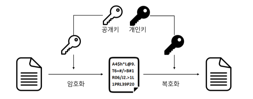 주고받는 데이터를 암호화하고 복호화하는 방법에는 대칭 키 암호화와 비대칭 키 암호화하는 두 가지 방식이 있다.비대칭 키 암호화는 공개키 암호화라고도 부른다.